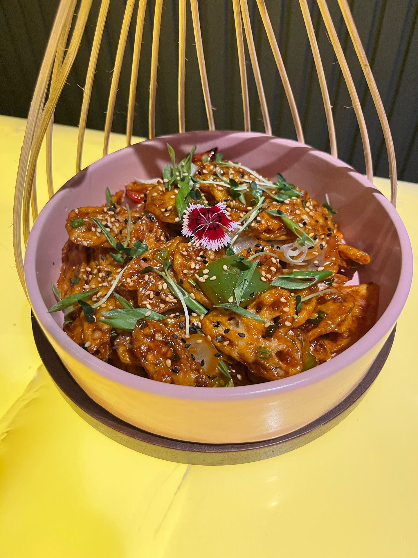 If I talk about food and drinks then I was amazed with their service. We had Veg Farmhouse Pizza, Asparagus tempura sushi , Mock meat Tandoori Chaap and lotus stem chilli.
