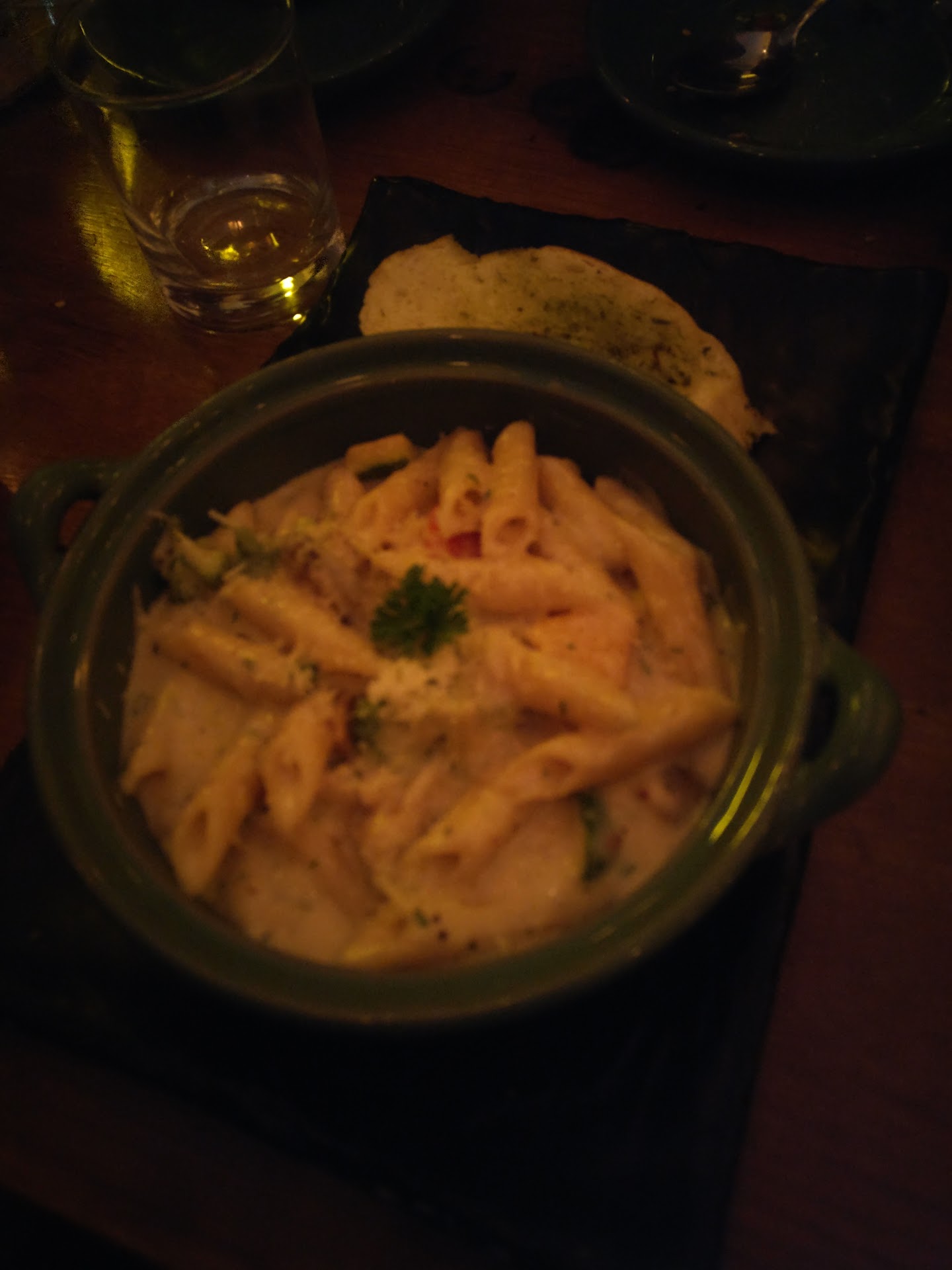 My only peeve with the restaurant is that the serving staff was either under prepared or ill trained to handle groups. We had to repeatedly ask for glasses of water or for refills and I had to ask atleast 4-5 times for our bill to be presented. All of this was enough to sour our evening experience and start a discussion on this topic. The music was a bit too loud for the restaurant to carry a proper romantic ambience that it might be going for.