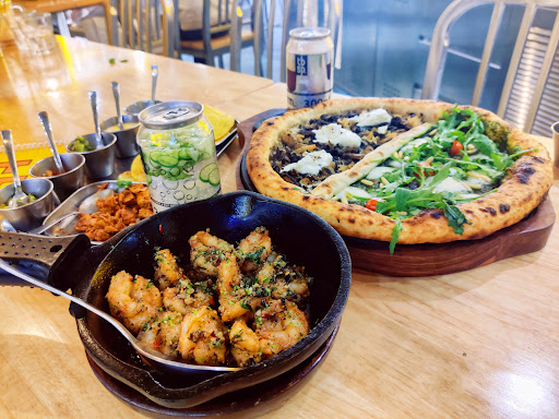 Read moreTblspn a short form for tablespoon is an Italian and American speciality kitchen theme restaurant from the house of yum yum cha. Located in plus dlf avenue,the place has kitchen themed interior with rustic decor and offers most exotic and fresh preparations with minimalist approach. The menu is very interesting and have some Extensive choices in dishes too.Wether a luncheon or a coffee meet,the place is apt for both.They have interesting pop cans to pair with your food like raspberry soda,cherry cola and i tried their creme cola which had vanilla and creme and the taste had childhood nostalgia back. We started with Mexican chicken tray.It had wonderfully curated d.i.y style tacos with grilled chicken,jalapenos,quesa,sour cream,salsa and guacamole.The dips were so fresh and the taste was so amazing. It was followed by Mocha cold coffee latte,which again has options of coconut milk or almond milk.Freshly stirred on the table the mocha ice cubes and milk give such a heavenly ombre effect forget the euphoric taste alone. Next dishes were Prawns aop,had herbs and chilli with aglio olio and garlic.Again fresh prawns and amazing taste of herbs with garlic and generous olive oil. Following Prawns we had stuffed mortobello mushrooms.This is the best mushroom dish I've ever had.Along with 685,creamy sauce and spicy rub the mushroom cakes had this amazing texture and taste that i can visit this place again just to have it again.Its highly recommended. We tried their half and half pizza namely truffle and pesto as we wanted to taste the fresh pesto and truffle both seperately. We tasted the pizza and their dough was so good and different and we learnt that it takes 3 days to process and done by the chef's to reach each stage with perfection.The pesto was so fresh and retained the crunch and pine nuts and rocket leaves complemented the taste while truffle had mushrooms and cream and was melting in mouth. Marking the end with sweet note we opted for crack cream Espresso with coffee,vanilla,cream and savoiardi. Crackled and dolloped and savored in seconds,the dish had perfect proportions of caffeine and sweet content.The playbof textures with crispiness and absolute jelly beneath,this is something your tastebuds will crave for afterwards too. Overall an unmatched place for people who love fine Italian and American preparations,extensive menu and some great coffee...