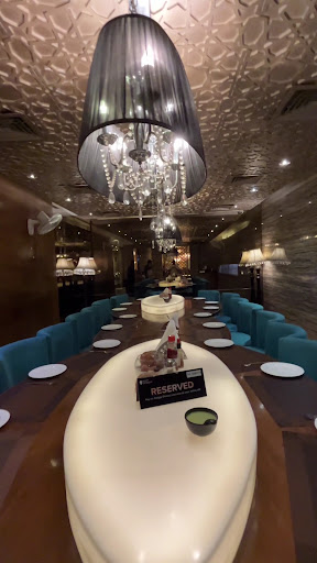The restaurant features luxurious interiors with various seating options suitable for both small and large groups. The staff is noted for their professionalism, and the overall vibe is calm and upscale, making it ideal for family dinners and special occasions.