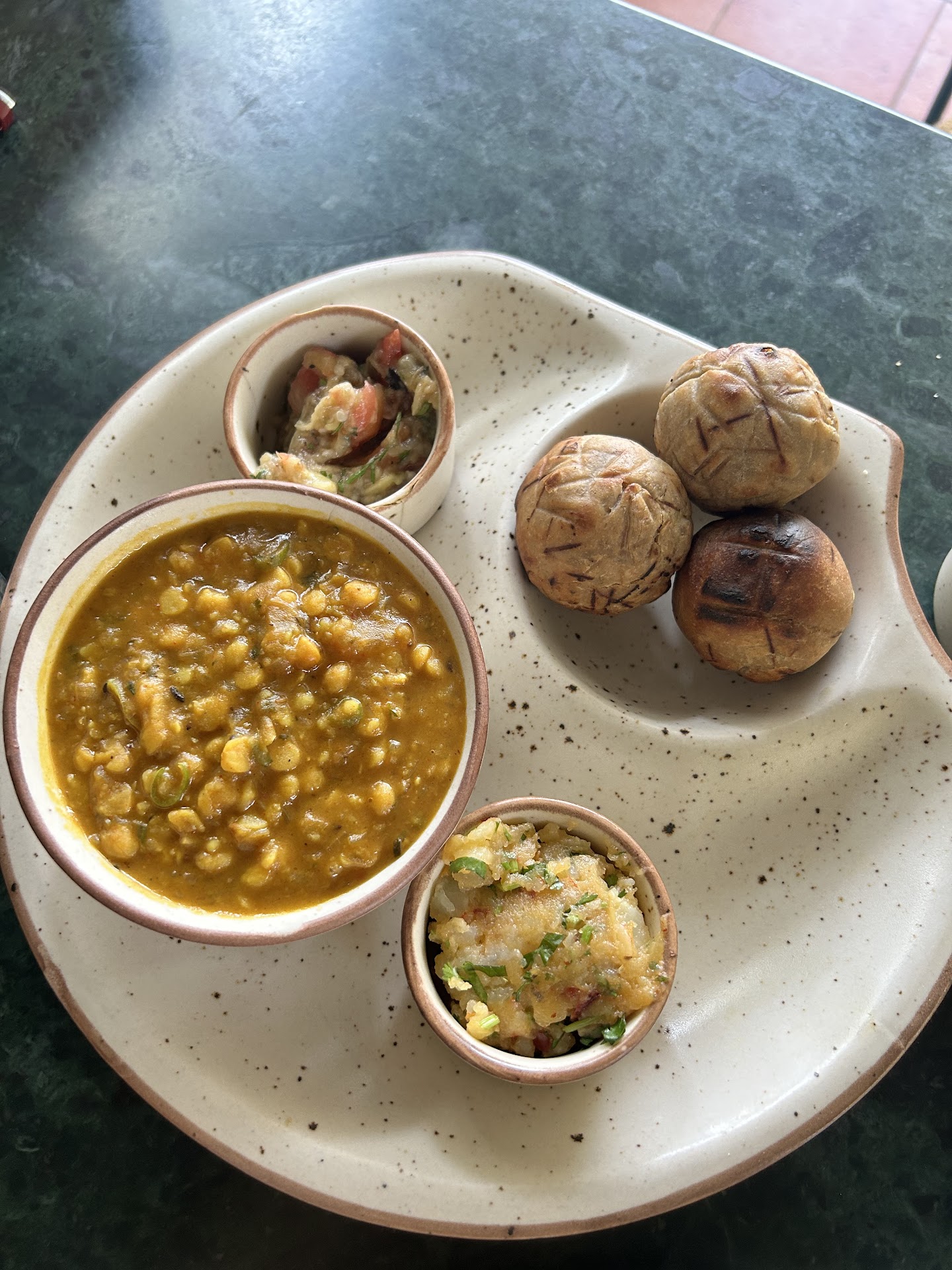 The menu had a lot of things we never heard of and everything looked so tempting that it was difficult to decide. After some discussion and recommendation from the attendant we decided to go for Dana Jhamarua Thali as our main course. This consisted of rice flour based bread stuffed with poppy seeds and a mustard based gravy dish with potatoes and eggplant. The platter also had Sabudana Vada and green chutney. We loved every bite of the food and every bit of this experience. Another thing that made this dinner amazing was the fact that none of the food items were greasy (overtly oily).