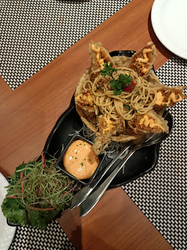 Dragon in bowl in starters: Chef special dragon rolls served with spaghetti. They were so crispy and lip-smacking. They served spaghetti and dragon rolls in bowl. Amazing thing was that You can also eat the bowl bcoz Bowl was made with maida. And dragon rolls filled with noodles and vegetables served with chilli chutney. This was something unique and different. Just loved the presentation. Highly recommended. Taste: 5/5