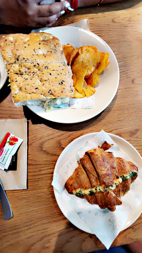 Food & Snacks • A varied menu includes sandwiches, croissants, pitas, paneer toasts, pancakes, and desserts like cheesecake and banana‑walnut cake  . • Most items are tasty, though some wish for more veg dessert options . • Portion sizes are generous and prices relatively reasonable compared to Western-style cafés .