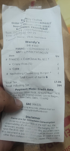 Hii..i ordered 2 nachos burger combo from wendys on 2nd Oct 2025 night via zomato but the drinks are missing so I mailed zomato but as its pathetic service they close complaint without providing relief even after sharing pics...so I decided to reach wendys laxmi nagar as it was almost a half km far from my home...as it was my hard earned money nots #zomato ( bloody thiefs) Their the store manager mr. Chandrapraksh really listen to my concern and was very much worried for the wendys brand value and customer satisfaction so he provided me with complementary drinks nd ice cream by aman from the staff.