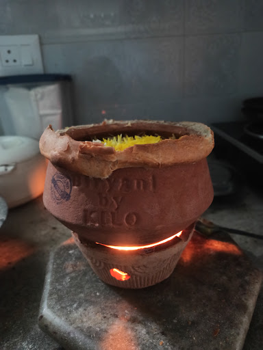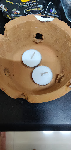 1/2 Chicken Briyani:::: Before eating only it was looking so so beautiful in a half KG sand clay pot with branding engraved on it on both sides, sealed with some kind of flour. It was a perfect Dum Biryani. Plus they provide a candle stove with some candles to keep the biryani warm. Also... they provide some seeds so that after enjoying the biryani you can grow some plant into it. How creative and eco friendly is that!! never seen such perfect use of the a waste clay pot.