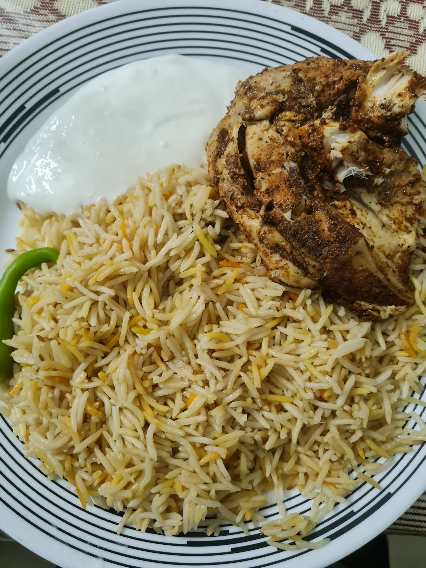 I ordered the chicken mandi, and from the first bite, it was clear that this dish was cooked with great care and attention to detail. The chicken was incredibly tender and juicy, with a subtle smoky flavor that came from slow cooking the meat. The rice, cooked to perfection, was fragrant with spices like saffron, cumin, and cinnamon, creating a depth of flavor that was both comforting and satisfying. The grains of rice were perfectly separated and fluffy, absorbing the rich flavors of the meat and the spices. The portion was generous, making it a perfect dish for sharing.