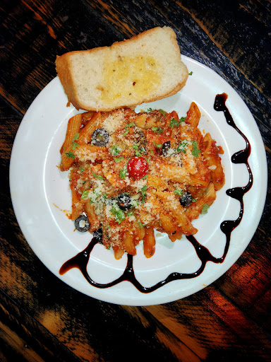 Pasta - Pasta sauce has a flavour of garlic, tomatoes and olive oil. Presentation was on top.