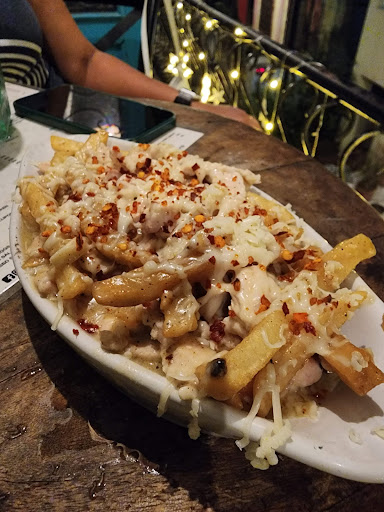Lovely little bar in the by lanes near one of the most famous churches in Panjim. It's one the 1st floor and you've got to climb a narrow steep staircase to get there, it's easy to miss so keep an eye out for it. Once you enter inside, you'll find multiple smaller sections or rooms where you can find a table to sit down and relax. It's a very communal feel to it with people from other tables mingling with each other. There's also a narrow balcony section which has a few tables that can accommodate 2 each. We've been here a few times and noticed mostly local visitors and some international tourists. The beer cocktail (I forget the name) is a popular favourite here and is our regular order too. The bhindi kurkure and prawn wafers are favourite bar snacks here. We also tried the chicken poutine which is pretty good initially but then it gets too heavy to finish because it's so overloaded with butter. There was a spicy chicken thing we also tried which was really good All in all, would definitely recommend this place for some good music, a nice Vibe, good bar...