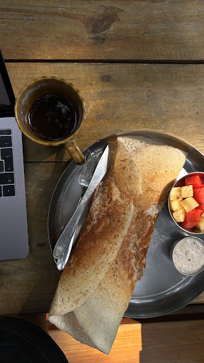 Read moreHad to eat breakfast here as we had stayed for a couple of days at the adjacent Akasa Goa and their "complimentary breakfast" is provided at this restaurant. This is a vegan restaurant (they do serve eggs... ahem!) and the almond milk coffee we took was not good, probably coz we are not used to having it. However, the place didn't feel hygienic at all, there were limited tables and at one point we had to wait a little with the baby to sit for breakfast. The roof was also leaking at one spot. The cushions had so many stains on them that we decided to take a seat on the bench without cushions. My wife and I were discussing that if the outside itself looks like this, how bad would the kitchen be!! I also found a hair in my pineapple juice once!! The dosa we took was extremely sour, probably the batter was a day older than it should have been! The pancakes could have been good if not for the exorbitant amount of sesame seeds on them. The breadomlette butter was very tasty though. We didn't try any other food here as it was vegan and hence went out for lunch and dinner. There is no alcohol served here either. There is a decent coffee place right opposite and one can visit there for "regular" food. Having said that, the staff in particular were polite and service was alright, so no complaints there. And to the owner of this place, I have read through the reviews here to see if my experience matches with fellow customers', and I see that you have been replying very rudely to the negative feedbacks! Please understand that all customers wouldn't simply put up false reviews just for the heck of it, we dont know you personally and hence wouldn't have a reason for doing so! Learn to take EVERY review with the same attitude and work on them if required. Dont be under the impression that you are running a perfect place with no scope for improvement at all! Dont come off with a threatening demeanor to the negative reviews and try to intimidate them, not cool at all! And MOST IMPORTANTLY, please stop trying to establish a narrative that the negative reviews are by people who are trying to target vegan cafes or your staff etc. You are really full of it if you say that your whole purpose is to promote a sustainable living or help your staff. I mean, come on!! You are running a business there and at the end of the day, its ALL ABOUT your sustainability, so lets not kid ourselves!! Finally, to pu it in your own language: This is my review with my experience at your cafe, and if you dont like it, just...