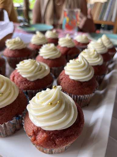 I was surprised some of us still had place for dessert. Radhika laid out a tray with the softest most delicious red velvet cupcakes and a basket of flaky delicious mini pain au chocolate and almond croissants to round up the menu.