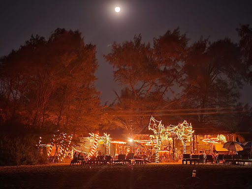 Their cafe is so pretty, with twinkling lights everywhere. It's the most beautiful beachside spot I've seen in Goa. They don't play loud music, which I liked. Instead, they have nice soft tunes that make relaxing on their comfy couch or beachside beds even better. Imagine chilling out there, enjoying tasty food and drinks, and looking up at the stars—it's a magical experience! Highly recommend this place for a wonderful time...