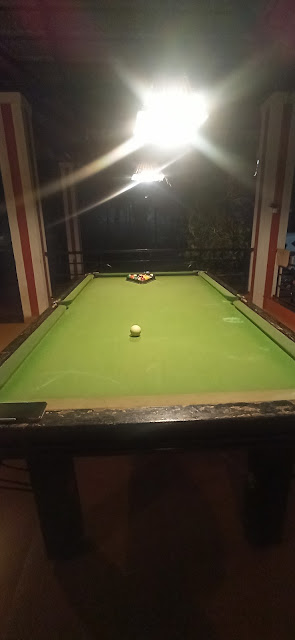 Other than that they have a open roofed main area of the restaurant and an open air beautiful place on the side. There's a snooker table there as well. Great...