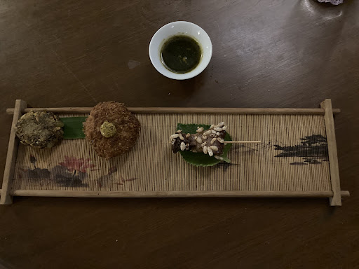 Ambience was good - simple but elegant. The staff were prompt and courteous. We had booked a 4 course curated lunch - they gave us a glass of white wine followed by a tomato salad, appetizers, an entree and dessert.
