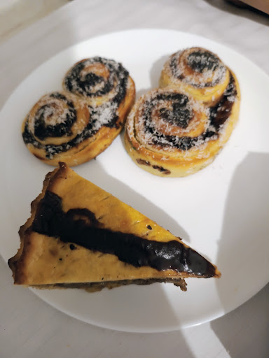 On my first visit, I tried the lemon cinnamon roll, chocolate croissant, apple crumble, and chocolate roll. The lemon cinnamon roll was good, with a nice balance of flavors. The apple crumble was just okay and didn’t justify its price. The chocolate croissant and chocolate roll were disappointing, as they had very little chocolate, making them quite bland. Overall, the experience was mediocre, but I still decided to give the place another shot.