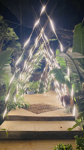 Situated at sim waddo, anjuna, it’s away from all the hustle bustle of the traffic in a calm paddy field setting. Quite an impressive set up i would say . Also more fun if you visit at night .