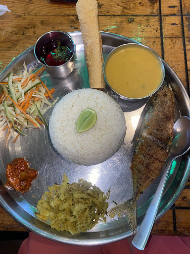 The food we ordered was better than nothing. The Dosa was too soft and watery. Really disappointing in comparison to all the other beautiful places around. Also it was very small. My husband ordered Fish Tali. Most of the plate was filled with rice, and the King Fish was just super small piece. Like the size of maximum two fingers. In all the other places you get a whole fish or at least, if the fish is too big, a nice piece of it. We eat Thalis in and around Patnem every day since one month and this was by far the worst experience.