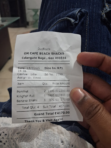 Read moreI stayed at Estrella do màar Beach resort at calungut beach. Just a 50 steps and u will find On Cafe Bar right on the beautiful beach with huts. We had taken dinner and lunch two days in a row. It was delicious and moth watering. Owners and staff were right besides you whenever u need any service. The best I can describe is my lost purse with 10k cash and all credit cards n stuffs. I accidentally forgot stuffs at beach in the morning. I just had came to know about this when I was searching it at dinner time at 10.30 PM. I tried to search n went to om Cafe to ask. And with all surprise, it was there in the Cafe with all stuffs untouched. This is the perfect example to describe kindness and generosity of the Cafe staff and of course of goven people. Loved and carried so many beautiful memories. Thanks to all lovely people there at OM sai Cafe. Keep doing the good stuffs.