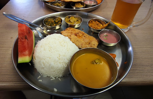 A simple place 'non AC' but Serves good, tasty, authentic value for money Goan fish thali, much much better than many of the hyped up restaurants on the beach stretches in Goa that charge a bomb but serve what is no way authentic Goan taste. This shady looking restaurant is located at the back of Mapusa Muncipal Market, ie fish and meat area and is worth a try. The basic fish thali was with fish named 'Muddoshi' in the local Goan Konkani language and which in English is called as Lady Fish or Silver Fish Whiting, and also known by different names such as 'Negli/ Nogli or Kane' in Karnataka's Mangalore Coastal Belt and is called as 'Kilangan, Kilachi'(கிழங்கான்,கிளச்சி) in Tamil, 'Poozhan'(പൂഴാണ്) or 'Noongal' (നൂങ്ങൾ), or 'Cudeerah' (സുദീരഹ്) in Malayalam. The thali had one fried rava coated fish 'muddoshi', one vegetable preparation, one shell fish 'tisriyo sukhe' preparation, fish curry, and Sol Kaddi made of Kokum. Was pleasantly suprised to find that the dessert in the thali was a slice of fresh fruit 'watermelon'. The goan fish thali served here goes down well with a glass of chilled beer 🍻 and is an escape from the hot sun outside, if you are on a round to the Friday Mapusa Market or even otherwise....