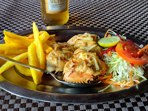 Perfectly cooked, tender crab meat stuffed in a crab shell with a side of fries and veggies. A must try.