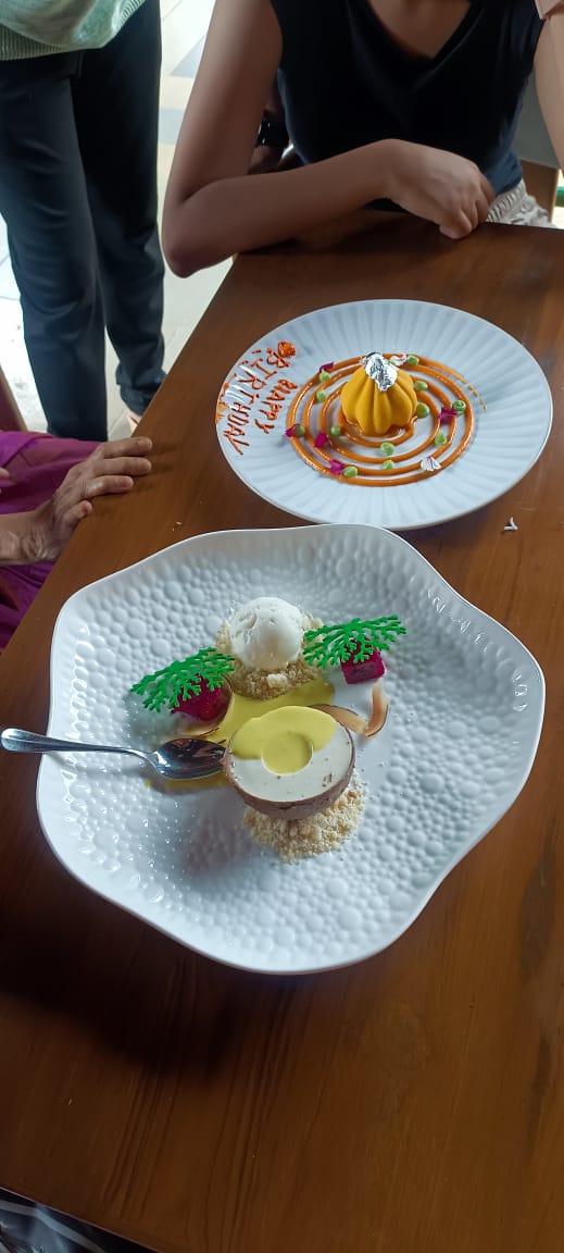 Sunday 22nd June was a very special day for us. It was our Aai's (Mother's) 80th birthday. We- all her children, daughter-in-laws and grandchildren - had a quiet , warm celebration at home late morning. The birthday song was chanted, the cake was cut and lovely family pics clicked. Post cake cutting ceremony we had planned to go out for a lunch at a restaurant which must be classy and premium yet warm and cosy. It should be an authentic Goan, we all unanimously decided. And, without blinking a eye, the name that popped up in unison was ' SPICE GOA ' @SANGOLDA. Yes !!! This is THE PLACE which fulfills the criteria we all agreed. Immediately called the manager Vikram, booked a large table and headed to the Spice Goa @Sangolda. Housed in a magnificent Old Goan Mansion, aesthetically renovated, this place exudes cheerful vibes right from the entrance. With a lovely shades of yellow for the walls and soothing green for doors, windows the place just exudes welcoming warmth. Having been to Spice Goa at Karaswada, n number of times, we were all sure what to order. Tandoor Chicken, squids, mussels and "Chonak fish thalis" was the choice of most while " prawns fish thalis" was the choice of two. With a round of drinks to give enliven our talks and cheers we eagerly awaited for the thalis to come. Chicken was soft and tender, sqids, mussels freshly picked. Voila! there rolled in Special thalis on our table in a while. A first bite of crispy fresh Chonak fish... a first bite of rice nicely blended with Sungtache human ( prawn's curry) , kismoor.... wooow !!! Everything in the thali was just lip-smacking . Authentically Goan! Every one of us- in short the three generations- just relished the food from Spice Goa. With lovely live music playing melodious konkani numbers, breezy outdoor elegant seating in the aangan (courtyard) the ambience of the place makes it standout from normal/typical congested restaurants. We were pleasently surprised to see Dr Fish Atul shuttling in and out of kitchen, visiting the guests and supervising the cooks in the same elance. Yashovardhan along with his brother, makes a point to meet the guests and make them feel comfortable. As Mr Atul dropped in to talk to my Aai, asking for the feedback about taste of food, I casually mentioned to him that its her birthday today. To our pleasant surprise he presented us with a spread of delicious desserts as a complimentary birthday treat and a inhouse innovative cake. We were touched by this lovely gesture.Thanks a lot Mr Yashovardhan, Mr Atul and team Spice Goa, Sangolda for a...
