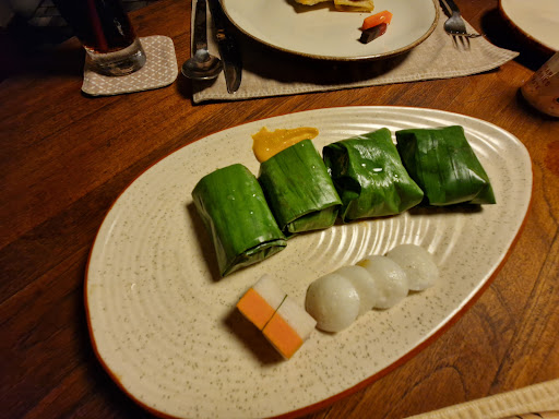 The first dish was an incredible Malabar paratha topper with mutton, caramelized onions, wrapped and cooked to perfection in a banana leaf—an explosion of flavors and textures.