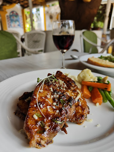 We stopped at "The Mango Grove" as we were famished and dying of hunger due to the humidity. We placed our order (Pork Chops, Spinach & Mushroom Pasta and a glass of Port Wine) and sat back browsing our phones to pass the time and take our minds off our hunger. The wine was served first as it had to be just poured. Out of nowhere a fly falls into the wine and the owner didn't find it important to change the wine and give us, he was like "I'll remove the fly and give you" hence we had to proactively tell him to change the glass of wine and give us. *As an owner of a restaurant, he is supposed to know that any germs transferred by a fly are likely to make you fall sick. It is also known that flies get scared when they fall into any food or drink and hence let out pee as a defense mechanism. After about 45-50 mins, we realize that the food hasn't been served to us yet, hence we decided to ask and the owner responds "5 mins" so we waited. The food was served after 5 mins exactly and we begun eating, only to realize that the restaurant took so long to serve us uncooked (not thoroughly cooked) Pork Chops and Pasta. When I cut a piece of chops to eat, I was taken aback because of the sharp, pointed bones that were inside the chops. It was so sharp that it hurt my palate. Usually Pork Chops is known as the ribs of the pig. My friends Pasta was a disaster too because the spinach-mushroom cream was good but the penne was half raw and the garlic bread that came with it was too hard. Overall being a bigtime foodie, I would have to give this place a thumbs down because as beautiful as the place looks, the food wasn't that great and the service was...
