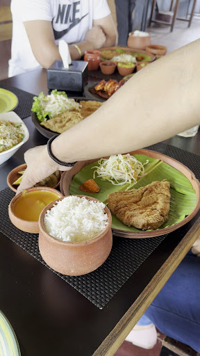 Authentic Goan fish thalis (kingfish, pomfret, prawns) served in earthenware
