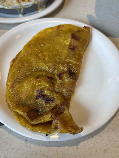 The dosa, most common food item on demand, is crispy and has a tasty potato 🥔 filling.