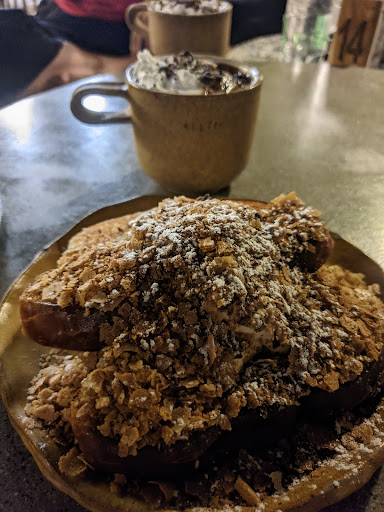 Ambience was good, service was good but food is extremely pathetic and over costly. We had Hot chocolate ,chocolate croissant and Tiramisu french toast... From the photo it looks delicious but trust me they were the worst food we ever had. Even hot chocolate was bad. I don't know how anyone can mess up this simple dumb item. It had lot of whip cream and some chewy particles. Taste was also very bad. Chocolate croissant was simple puff with thin layer of chocolate syrup. Worst of all was Tiramisu french toast. There were 2 breads fried in butter with some weird cheese and coffee bean particles sprinkled on them with slight sugar. You get nauseating feeling with every bite. There ambience was the only thing that justify there pricing. And coffee ,shakes menu is extremely limited. Only 3-4 types available so if you're looking for good beverages kindly skip this place.