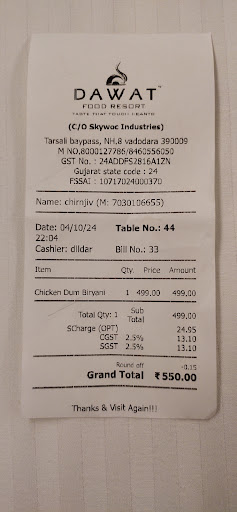 In conclusion, Dawat is an excellent restaurant that offers a wide variety of vegetarian and non-vegetarian options at reasonable prices. The food is well-prepared, and the staff members are courteous, making it a must-visit destination for anyone looking to enjoy a good meal...