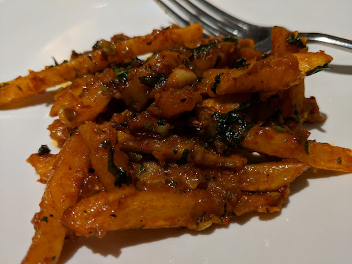 Ordered penne basil miami sauce pasta from Zomato.. they sent only one small piece of garlic bread.. and pasta was too sweet and wierd taste...no spices(usually a basil pesto shud have a blend of spinach,garlic,basil,oregeno,cheese)2/5