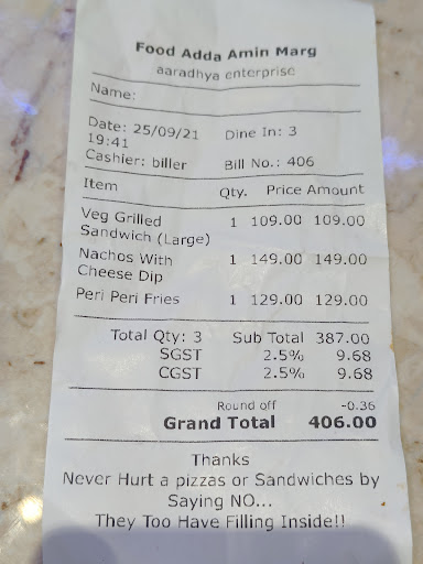 Read moreFOOD ADDA (Amin Marg) is a popular fast food restaurant located in Rajkot, Gujarat. FOOD ADDA offers a variety of fusion dishes, including Italian, Mexican, and Indian options. Some popular items include ¹ ³: Tallest Burger in India: A massive burger that serves almost three normal people, priced around ₹500. Pizza: Nicely cooked and flavorful. Pasta: A must-try. Paneer: Delicious and flavorful. Waffles: Tasty and worth trying. Lava Pancakes: Small-sized and perfect for dessert. Customers praise the restaurant's food quality, service, and ambiance. Overall, FOOD ADDA (Amin Marg) seems like a great spot for foodies looking for a variety of fusion dishes in a...