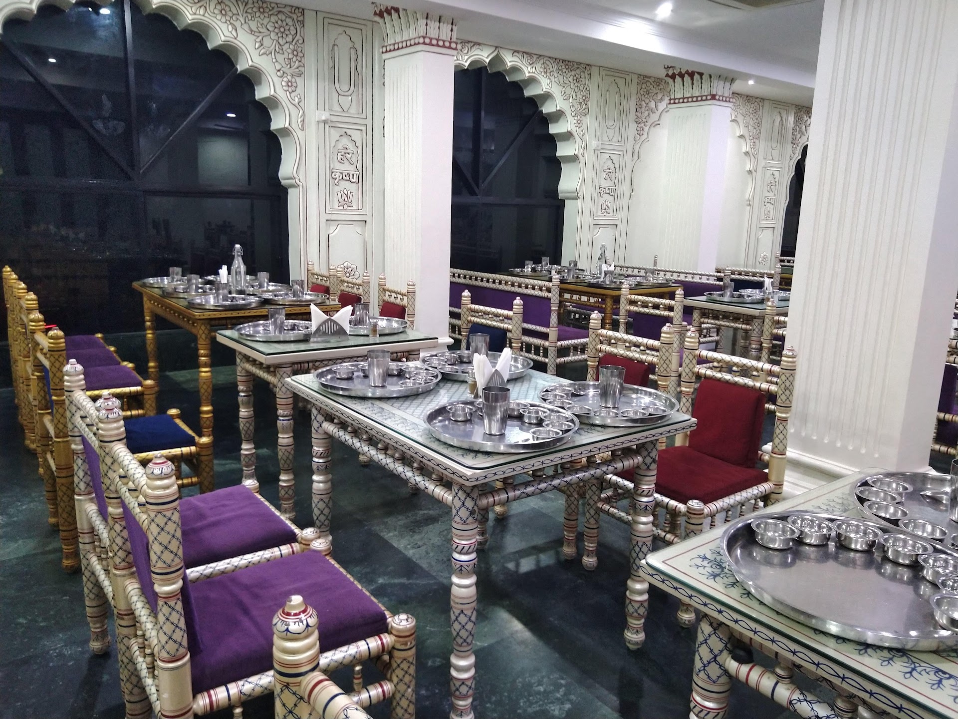Had a great experience here! Great temple like ambiance will give you devine experience. Rajwadi kind of sitting arrangements will give you feel of a Royal treatment. More than 17 varieties (no onion, no garlic) you will get in thali. 4 sabji, Dal, Kadhi, Aam Ras, 2 Farsan, 1 sweet, chatny, Pickle, papad, chhash, Rice & Khichdi, Puri & Roti for Rs.300/- per person. Service staff is very well trained and polite. They all were in Indian traditional attire. Very frequently they will come to you, ask you & will serve you what you need. One very unique thing i observed there is, staff were talking to each other in code words. Suppose person came to you to serve you a roti and you asked for Aam ras. He will snap and give signal with a fingers to his fellow serving staff & within no time without uttering a singal word, person will come with Aam ras to serve you. So overall it was a great experience!! It is a must visit place.