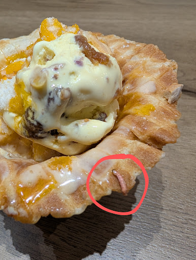 I ordered a dessert and to my absolute horror, I found a live caterpillar embedded in the waffle bowl (attached image as proof). This is completely unacceptable for any food establishment, let alone one that promotes itself as a quality eatery.