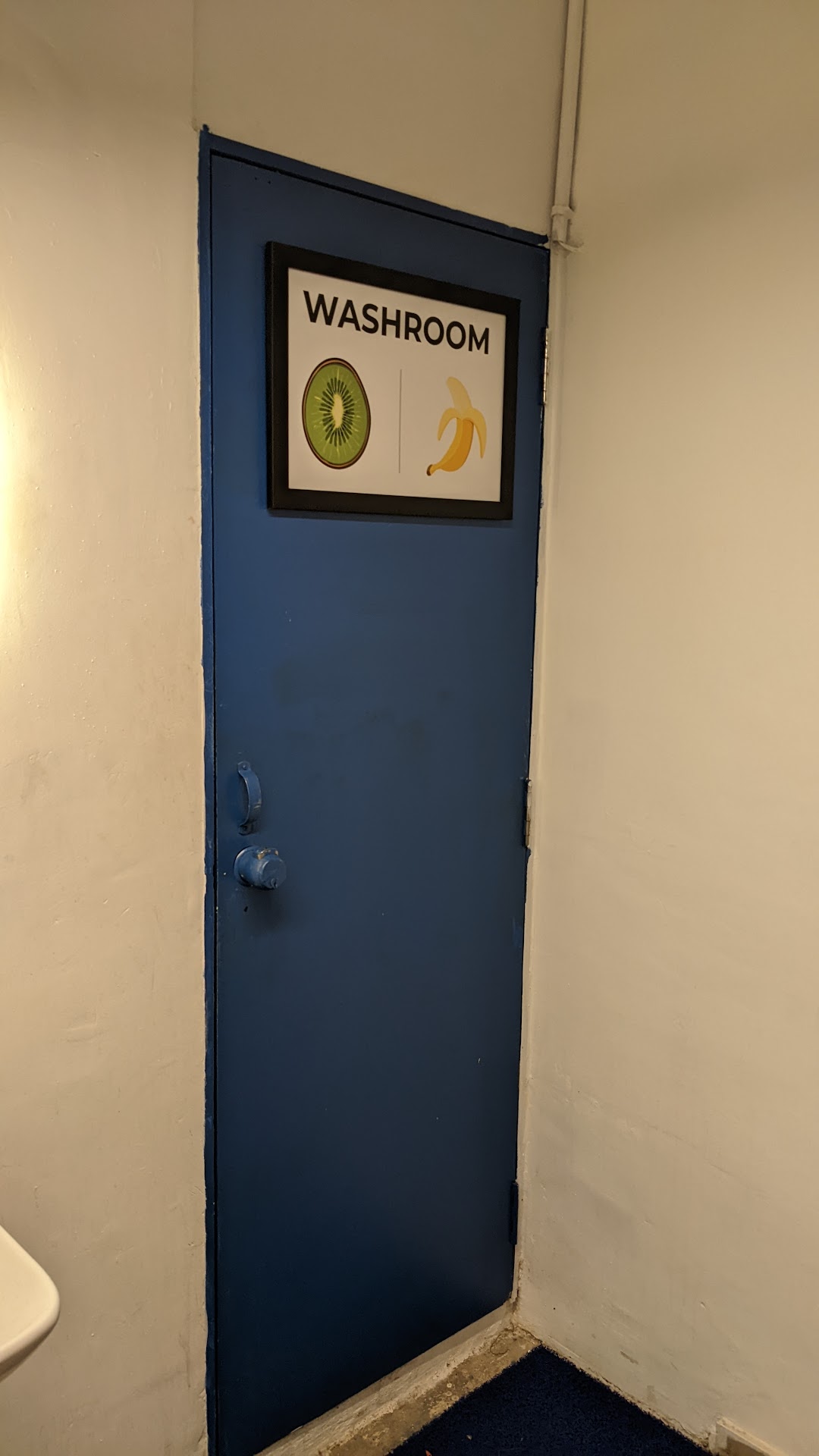 ABOUT WASHROOM 🤫 The photo of 'Washroom' that I uploaded is not giving me good indication of a family restaurant. I know the restaurant has tried to be creative by pasting a photo of Kiwi 🥝 for Women, and Banana 🍌 for Men on the Washroom door, however many will consider this as vulgar if not me. These two pictures independently highlight nothing of any vulgarity, but when posted on the door of Washroom clearly depicts the genitals of female and male. Now some may think that this is ok, some might take it as offensive. And even if only 1% of customers think it as vulgar, please take it down because this will not create good reputation. Nevertheless, I want to know from the restaurant's creative owner that "What motivated them to create such depiction of people's personal parts to just tell public that this washroom is both for men and women?" 🙄🤔