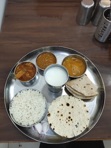 Read moreIf you are interested in having Gujarat's Kathiyawadi regional cuisine then this place is one of the few good restaurants in Baroda to visit. I had unlimited thali(meals) for lunch with my friends. Meal is priced economically at 100rs per person. Their range of pickles offered is very nice. You will be served hot rotis until your tummy can take in ;). Rice is limited and served with Dal. I found Dal too sweet for my palate so couldn't finish it full, but ended up eatig 10 rotis. LoL. Roti is served with 2 curries. I also ordered an A-la-carte dish called Dahi Rassa, which was amazingly tasty. Its usually made of lotus leaf rolled in lentil batter(besan) and cooked with curd and masala. This one was unique and first for me as i never tried such a combination. But overall it is good. Do try out if you are close to Makarpura area...