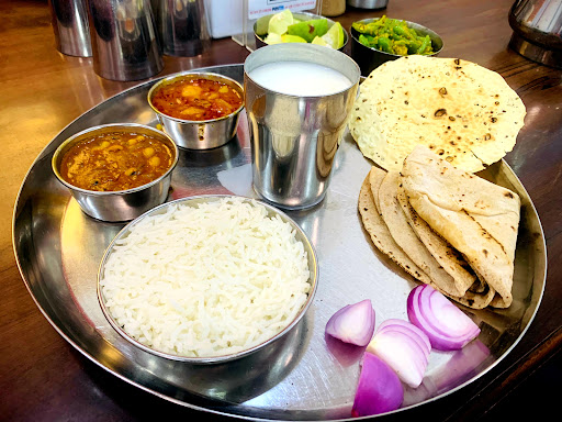 Read moreIf you are interested in having Gujarat's Kathiyawadi regional cuisine then this place is one of the few good restaurants in Baroda to visit. I had unlimited thali(meals) for lunch with my friends. Meal is priced economically at 100rs per person. Their range of pickles offered is very nice. You will be served hot rotis until your tummy can take in ;). Rice is limited and served with Dal. I found Dal too sweet for my palate so couldn't finish it full, but ended up eatig 10 rotis. LoL. Roti is served with 2 curries. I also ordered an A-la-carte dish called Dahi Rassa, which was amazingly tasty. Its usually made of lotus leaf rolled in lentil batter(besan) and cooked with curd and masala. This one was unique and first for me as i never tried such a combination. But overall it is good. Do try out if you are close to Makarpura area...