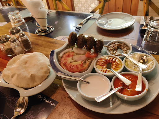We ordered veg clear soup, baked potatoes, mezze platter and classic mojito. The soup had just baby corn, carrots and beans. It tasted decent. Baked potatoes were good.... i felt it had more of a Mexican flavour due to the salsa and cream cheese in it. mezze platter was okish too. Baba ganoush was very bland. Hummus was towards the saltier side but bearable. yogurt was good. Harissa and tahini were okish. Veggies served along were tomato, onion and lettuce which was again meh... They could have added a few more things like cucumber, carrot, olives and it could have been better. And as far as i know mezze platter has veggie sticks. They served shredded lettuce, and randomly chopped tomatoes and onions. Kebab and pita bread were fine. Mojito was made with mojito syrup. Well i expected to get a fresh mojito from a hotel of this level! They made the mojito less sweet as per our request.