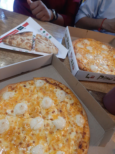 My friends and I arrived at Halol LA Pino'z for lunch around 1 PM in the summer. Despite the cool environment and the place being mostly empty, it took over half an hour to serve our food. This wait time was longer than at other LA Pino'z franchises. The taste was good but not up to par, as the Cheezy 7 pizza tasted...