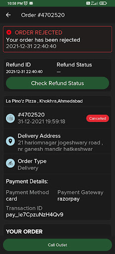 Half an hour later, I got a call from a delivery person saying he had my order ready. But how is that even possible when the app never showed the order as dispatched? It feels like something suspicious is going on. It seems like the staff might be involved in shady practices—perhaps avoiding delivery intentionally and just calling customers later, pretending the order is ready.