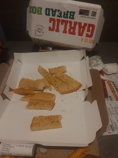 Read moreWe ordered two large pizza and stuffed garlic bread in the invoice there was mentioned we will get our order 20 minutes but we waited there for more than 30 minutes after receiving our order 7 cheese pizza & Stuffed garlic stick 7 Cheese pizza quality was very low as well as cheese quantity was not enough in pizza and for the garlic sticks we clearly mentioned to the concern person we need only sweet corns and they agreed on that we got the garlic sticks with sweet corns , capcicum and paneer stuffing and same like pizza cheese quantity was not enough after this all the things we informed to the store incharge and we got the response from. The team like that its company criteria and company decrease the cheese quantity in pizza like that we are not satisfied with the quality as well as the respond we got from the...