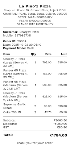 ย ย ย Read morevisited La Pinoโz Pizza in Jahangirpura for dinner and had a great experience. The staff is incredibly polite and attentive, making the visit enjoyable. They recommended their special pizza, which was delicious and worth trying. The place is well-maintained, with good hygiene standards. Thereโs also plenty of parking available, which is convenient. Overall, a fantastic spot for pizza lovers. Highly recommended!Good quality Best netrul Clean complete Say words are so few, the taste of sweetness, Behave like family, La'pinoz means JahaginrapuraRecommended dishes Garlic Bread