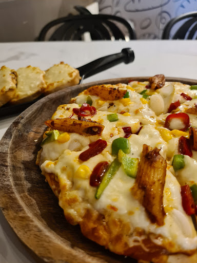 We ordered 5 items Farm Pizza, Macarons Special pizza, Strawberry Oreo Thick shake, Kaju badam Thickshake, and Cheesy garlic bread. The waiting time was around 15-20 mins. And finally, we received our first item Farm Pizza it was really good. The cheese properly melted and the crust was also baked nicely. Later we got our thick shakes and macarons special pizza. All these items were delicious. At last, we received the garlic bread and although my stomach was full and couldn't have anything still I gave it a try. I will say this was the softest garlic bread I ever had in Veraval.