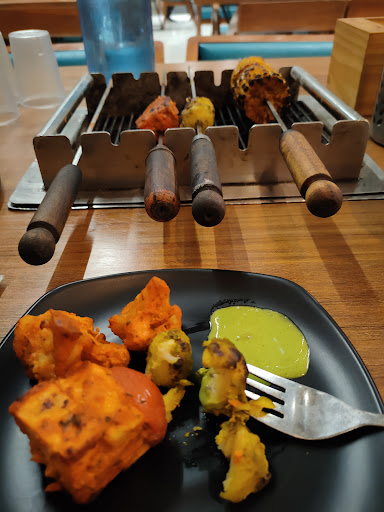 Its not so good nor bad bcs they have buffet which everyone like but it's quite expensive 303rs per person. Its kinda great deal for others but not for me. I guess its bcs I'm very stingy but well lets talk abt their food. Their food wasn't that great. And in barbeque i only like potato and paneer one. Crispy corn was good too and gulabjamun. They have pastries too but they are very small and I didn't like the way they tasted. I heard they hve 3 pani puri counters but i only saw one and there were only two flavours available which you can find in street stall. Sweet and spicy water. 🤷🏻♀️ I recommend everyone to just try. But its not for all time fav kinda restaurant. For me its one time try. I'll not go again but if someone's giving me party there then why wouldn't i 🤣 we all like free foods only from our close ones. Not talkin' abt frnds or whatever so its only...