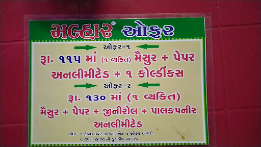Cheap and decent option for south Indian food in Mota varachha area. You will get same test in sweet corn and Jinny roll. 😂 Unlimited Dhosa has a three different rates as per their types of serving items. Basic is 120 ₹ in which you will get Unlimited Maisur-Paper and Masala dhosa, then 150 ₹ plan, you can have Maisur with three different types of dhosa like Palak, sweet corn and jinny. and lastly in 180 ₹ plan you will get one Gotalo and one cold drink, rest items are that of above mentioned. Its is good if you are looking for cheap option. You must compromise with...