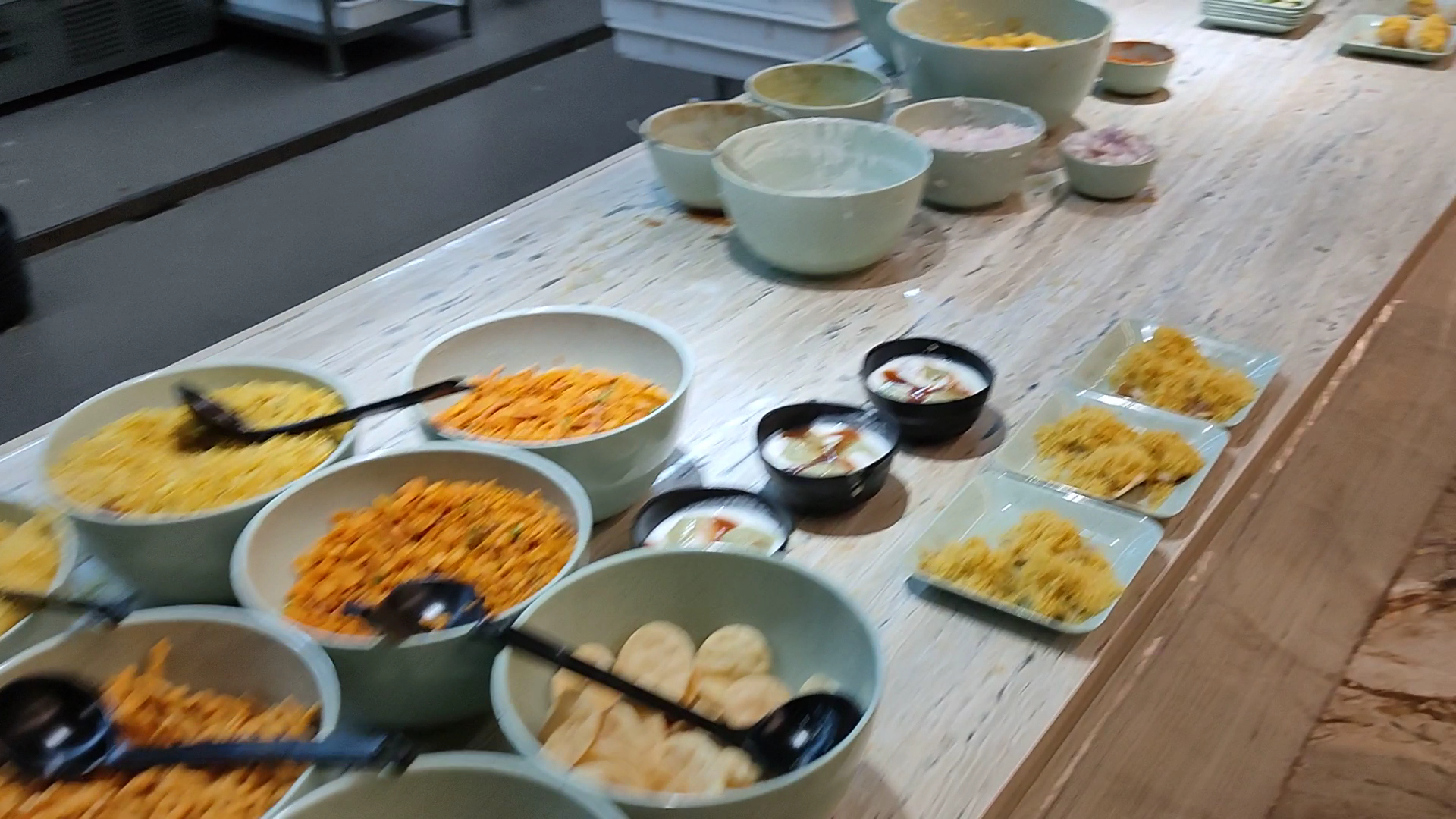 The buffet was one of the largest ones I have ever seen. The range of food items included Chinese, Italian, south Indian, North Indian, Chaat, desserts, dry snacks, ice creams, pastries, and much more. The first round started off with some tomato soup, Veg. Manchurian dry, paneer chilly, Chinese bhel, crispy potatoes, some noodles. The tomato soup was one of the best I have had. It was delicious, and the bread crumbs enhanced the taste. The Veg. Manchurian's were cooked to perfection. Soft and delicious to taste. The Chinese bhel perfectly combined fried sev, onions, and tomatoes blended with schezwan chutney. Crunchy yet spicy and tasty. The paneer chili was crafted in the most delicious sauce I have had, and the paneer itself was super soft to delve into.