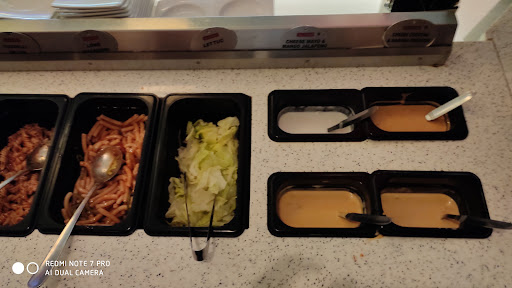 Limitless plates of vegetarian pizzas, salads and desserts are served at this chain pizza outlet.