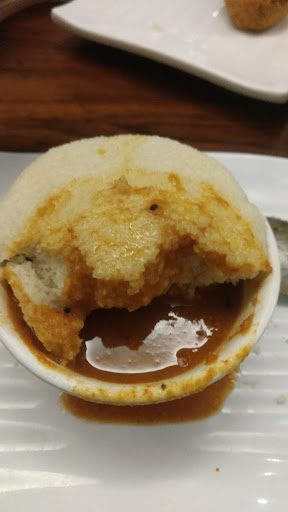 dishes small enough to make your already reduced sized platter look over sized, stacked up interiors, and not really the most appreciable space, welcome to the dinning hall serving water in heavy glass bottles, and in the name of style killing the comfort of people who have no interest in weight lifting whatsoever, and eat the biggest idli ever on earth, big enough to not fit in your bowl, and it's your moral responsibility to request for a large sized cup, if you plan to eat the idli with some sambar, because otherwise the dishes and cups were specifically designed with two year toddlers in the mind.