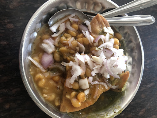 It is basically flavourful spiced channa dal topped with assorted chutneys served with crispy flat puris.