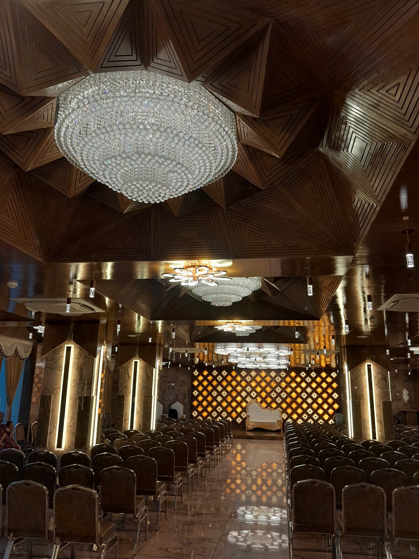 The seating arrangements were comfortable and spacious. There was ample room for everyone to mingle and enjoy the celebration. The banquet hall itself seemed well-maintained and clean.
